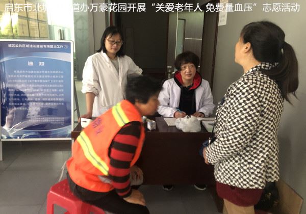 为方便社区老人,增强社区老年人的健康保健意识,关爱老人,关心老年人的身体健康,5月13日下午,万豪花园社区卫生服务站的志愿者为辖区60岁以上老人免费量血压。高血压是危险老年人身体健康的杀手,定期检查血压和能及早发现病变,对预防疾病有重要作用。万豪花园社区卫生服务站的志愿者为每位老人测量了血压,并向血压偏高的老人提出了指导建议,提醒老人们平时多多加强锻炼,发现头晕不适等症状的要及时到医院就医。在活动期间社区的居民们对我们志愿者与老人沟通方式很是赞同,对活动氛围也表示满意,社区居民希望我们以后可以开展更多类似的健康服务。