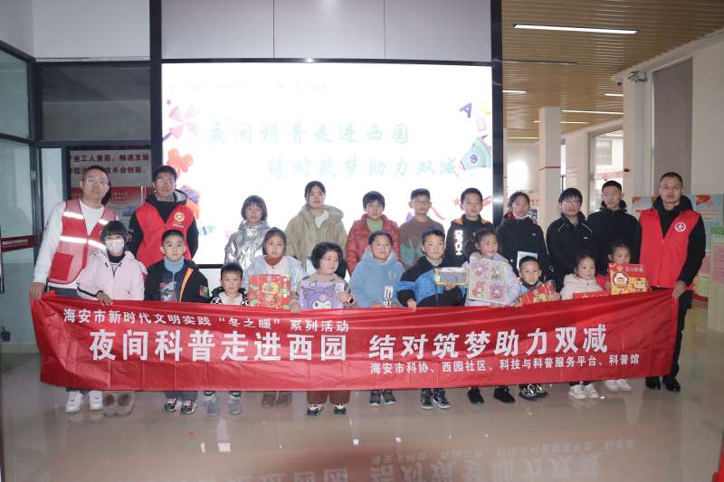为营造浓厚的科学氛围,推动“双减”政策的有效落实,激发社区居民爱科学、学科学、用科学的热情,培养创新思维和实践能力。1月28日,海安市科协牵头,科普平台、科普馆走进西园社区,联合开展“夜间科普走进西园结对筑梦助力双减”系列活动,辖区内20组亲子家庭参加。活动开始,科普志愿者为青少年们分发了科普知识竞赛试题,竞赛涵盖了自然科学、生活科学等多个领域的知识点。参赛的青少年们精神饱满,积极应答,展示自己对科学见解和学识的深厚了解。随后,科普志愿者为孩子们带来科学秀表演,通过“空气炮”“消失的水”“马德堡半球”等实验,展示了各种奇妙的物理现象,强烈地激发了学生的科学兴趣和探究精神。每一个实验都邀请孩子们登台体验,让他们在动手实验中思考背后的原理。令人目不暇接的科学秀,让同学们大开眼界。此次科普活动集知识性与趣味性于一体,将严肃化为轻松,让科学贴近生活。不仅让孩子们了解了科学小知识,而且培养了他们创新意识和动手动脑能力,拓宽了知识视野,激发了科创热情。接下来,海安市科协将继续充分发挥科普主力军作用,努力激发广大科技志愿者队伍积极性,深入社区、农村、学校常年开展科普场馆展演、送科技下乡、科技助力乡村振兴等活动,让科学知识、科学方法、科学思想、科学精神走进千家万户。