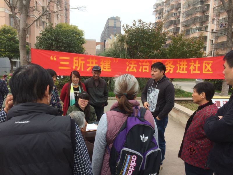 2017年11月14日上午,新白龙庙社区特邀港闸法院、大生律师事务所、天生港派出所、港闸经济开发区司法所和综治办人员来到社区,向居民宣传法律知识,为居民提供法律咨询服务。