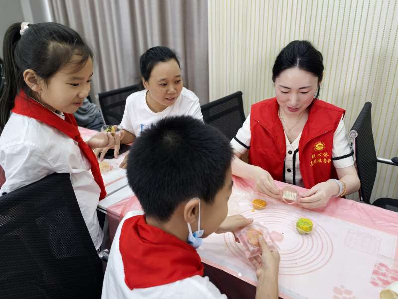 为弘扬和传承中华优秀传统文化,丰富青少年的精神生活,培养其动手能力和创新思维,海陵社区新时代文明实践站开展冰皮月饼DIY制作活动。活动中,志愿者首先为青少年及家长简单介绍了我国传统节日一一中秋节的由来,以及冰皮月饼的制作方法。随后,社区工作人员提前将制作冰皮月饼的手套、模具、面皮、馅料等工具和材料分发给大家。在志愿者和家长的指导帮助下,青少年纷纷动手体验和面、擀皮、包馅、压模等制作流程,看着自己亲手制作的冰皮月饼,孩子们的喜悦之情溢于言表,现场气氛十分活跃。