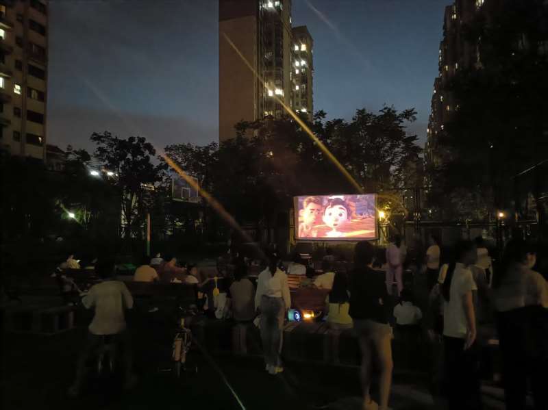为丰富居民精神文化生活,营造和谐友爱的社区氛围,碧桂园社区在小区开展电影进社区活动,传播正能量,营造和谐、温馨的社区生活氛围。