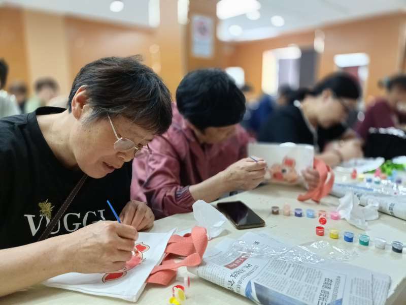 为丰富社区老年人的精神文化生活,促进邻里交流与互动,碧桂园社区组织开展老年人手绘帆布包活动,活动吸引了二十多位老人热情参与,大家在轻松愉快的氛围中共同度过了一段充满创意与欢乐的美好时光。活动伊始,社区志愿者从色彩搭配、线条运用等方面进行了生动有趣的绘画基础知识讲解。为了让老人们更直观地感受手绘帆布包的魅力,志愿者还展示了一系列优秀作品,色彩斑斓的图案、独特的创意构思,瞬间吸引了老人们的目光,激发了他们浓厚的兴趣和创作欲望。在绘画过程中,社区志愿者始终穿梭在老人们中间,耐心地给予指导和鼓励。有的老人采用点涂的方式进行涂色,志愿者会在一旁提醒他们注意颜色的过渡和层次感;有的老人大胆落笔,调出自己喜欢的颜色,志愿者则鼓励他们发挥想象力,大胆创作。当遇到绘画难题时,志愿者们会手把手地教老人如何调色、如何运笔,帮助他们克服困难。当老人因担心画不好而犹豫时,志愿者们会及时送上鼓励的话语,让老人们重拾信心,勇敢地表达自己的想法和创意。家住碧桂园小区的王奶奶一边认真地画着,一边笑着说:“十多年没拿过画笔了,今天社区组织这个活动,让我仿佛又回到了年轻时候。”经过一番精心创作,原本普通的帆布包在老人们的手中变得五彩斑斓、独具特色。活动最后,老人们纷纷展示自己的作品,并分享创作过程中的心得和感受。大家相互欣赏、相互赞美,现场充满了欢声笑语。此次活动不仅让社区老年人能有机会聚在一起,增进了邻里感情,还让他们从平常的家务中解放出来,在绘画中找到了乐趣和成就感。碧桂园社区将持续关注老年人的精神文化需求,开展各类助老活动,让社区老年人真正实现老有所学、老有所乐、老有所为,安享幸福美满的晚年生活。