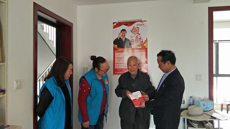 在此情况下,村580志愿者在村党支部的支持下,由孙锦坤支书带队到不能参加党内活动的老同志送去“不忘初心、牢记使命”的主题党课,并送上学习资料。