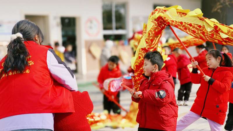 龙忙,开学童趣正飞扬近日,海安市海北幼儿园内一片欢腾,由海安市新丰村新时代文明实践协同精心策划的“萌娃闹春舞龙忙,开学童趣正飞扬”活动热闹开场,为孩子们带来了一场别开生面的开学体验。为了让孩子们更好地了解舞龙文化,老师们提前通过故事、图片和视频等形式,向孩子们介绍了舞龙的起源、意义和技巧,激发了孩子们对传统文化的兴趣。提及此次活动的主角——丁家龙,其起源可追溯至明清时期。相传,海安市丁家村遭遇大旱,庄稼颗粒无收,村民们忧心忡忡。一天夜里,一位老者梦到一条巨龙盘旋在村庄上空,洒下甘霖。次日,村民们便按照梦中巨龙的模样,扎制了一条巨龙,并在村里舞动起来,祈求风调雨顺。神奇的是,不久后,天空真的下起了大雨,当年庄稼喜获丰收。此后,每逢重大节日,丁家村都会举行舞龙活动,这一传统也代代相传,逐渐形成了独具特色的丁家龙。历经数百年传承,丁家龙在保留传统技艺的同时,也不断创新。其龙身由当地特有的竹篾编制而成,再用色彩鲜艳的绸缎装饰,龙身的鳞片精细逼真,龙头雕刻得威风凛凛,每一处细节都凝聚着丁家人对传统文化的热爱与坚守。活动当天,孩子们的欢呼声瞬间响起。那栩栩如生的金龙在阳光的照耀下熠熠生辉,龙身上的鳞片闪烁着金色的光芒,仿佛即将腾飞。在志愿老师的指导下,孩子们分成两个小组,手持龙把,开始了他们的舞龙之旅。一开始,孩子们还有些生疏,动作不太协调,但他们毫不气馁,互相鼓励。随着音乐的节奏逐渐加快,孩子们也越来越投入。他们时而高高举起龙身,模仿巨龙腾飞;时而左右摆动,仿佛巨龙在云海中穿梭。小脸上洋溢着兴奋和自豪,汗水湿透了他们的衣衫,却丝毫没有减弱他们的热情。舞龙过程中,孩子们展现出了令人惊叹的团队合作精神。有的负责举龙头,努力保持龙头的昂扬姿态;有的负责龙身,紧紧跟随龙头的节奏,确保龙身的流畅摆动;还有的负责龙尾,灵活地扭动着龙尾,为整个表演增添了不少趣味。他们相互配合,相互支持,共同演绎着一场充满童趣的校园舞龙盛宴。