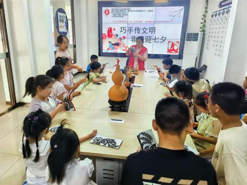 新桥社区新时代文明实践站开展“巧手传文明剪纸迎七夕”文化活动,志愿者先向大家介绍了“七夕节”的起源、民间传说及习俗等方面的知识,让居民更加了解传统节日民俗。志愿者耐心演示剪纸的方法与步骤,讲解剪纸中需要注意的事项和技巧,一步步做示范。大家为自己心仪的作品进行构图、设计。一双双巧手快速地在纸张上“飞舞”,经过一番剪裁后,变成一幅幅漂亮的窗花作品,共同体验“巧手”的快乐。