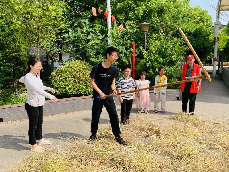 农耕文化是中华民族优秀传统文化的根基,为践行劳动教育,传承农耕文化,弘扬劳动精神,促进青少年德智体美劳全面发展。近日,谭港村新时代文明实践站、村关工委联合开展“学问躬行,体验农耕文化”主题活动,让孩子们深入田间课堂体验劳动,在泥土的芳香里,共赴一场劳动之约。活动开始前,谭港村关工常务副主任曹肇铭身先士卒,一边熟练地拍打着油菜荚一边指导孩子们认识打菜籽的工具、学习打菜籽的方法:“打菜籽需要使用专业农业工具叫连枷,连枷由连枷把、连枷板和转轴构成。使用连枷时,手臂与腰同时发力,将连枷把上下甩动,使连枷板旋转,再使劲拍打......”在曹爷爷的指导下,孩子们分组合作,互相配合,齐心协力地敲打着油菜荚,敲打声一下接一下,不急不缓,结实而有节奏,随后一颗颗饱满的油菜籽从荚中跳出,落入早已准备好的薄膜上。孩子们一个个干得热火朝天,手上虽然沾满了污泥,脸上也大汗淋漓,但丝毫不为其所动,沉浸在劳动的世界里,在劳作中对“谁知盘中餐,粒粒皆辛苦”有了更深刻地感受。