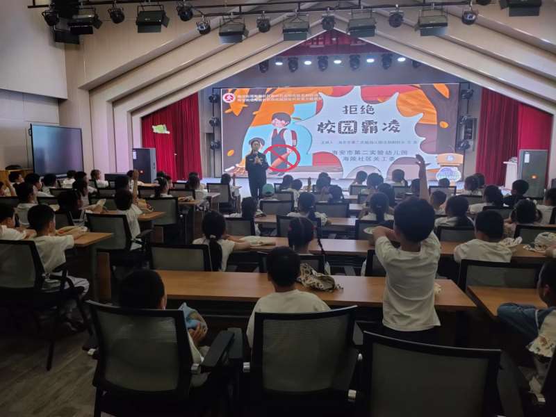 为增强孩子们对于校园霸凌的认知,提高自我保护意识,海陵社区新时代文明实践站、关工委联合第二实验幼儿园开展“拒绝校园霸凌”宣传活动。活动邀请海安市城南派出所民警、第二实验幼儿园法制副校长花蕾进行主题讲座,详细解释什么是霸凌、霸凌的危害、以及如何应对霸凌。结合具体案例,深入浅出地分析了校园霸凌行为的性质和法律责任,并通过与孩子们互动问答,进一步加深孩子们对校园霸凌相关法律知识的理解。此次儿童反霸凌宣传活动旨在增强儿童对霸凌行为的认识,培养他们的防范意识和应对能力,为儿童创造一个安全、和谐的成长环境。