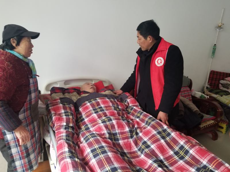 园庄村党总支书记何咸明带队来到“海安好人”涂照凤家,给她带去慰问金,勉励她继续发扬孝老爱亲精神,照顾好二十多年卧床不起的丈夫。并带领志愿者为她打扫卫生。