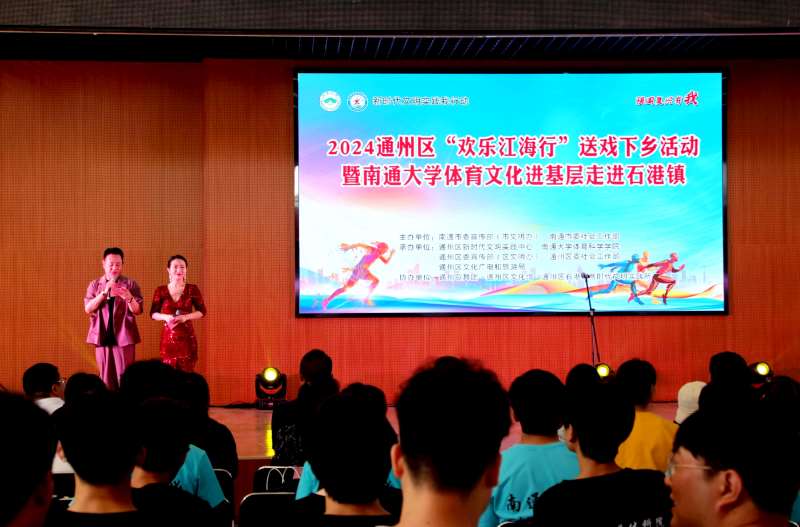 2024年通州区“欢乐江海行”送戏下乡暨南通大学体育文化志愿服务进基层走进石港镇江海村,为村民群众呈上了一场文化大餐和精神盛宴。活动现场,一系列文艺节目精彩纷呈,南通大学体育科学学院学生们的彩带龙、舞狮、排舞、健美操,尽显青春活力;通州歌舞团的音乐快板、小品、歌舞、萨克斯演奏等表演,既展现了通州深厚的文化底蕴,又将安全生产、反诈防骗等贴近群众生产生活的小知识融入其中。现场掌声阵阵,村民群众反响热烈。“没想到在家门口就能近距离看到这么精彩的文艺演出,生活更丰富了!”江海村村民陶汉林说道。演出前,南通大学体育科学学院的志愿者们还为村民提供了体质健康测试服务。