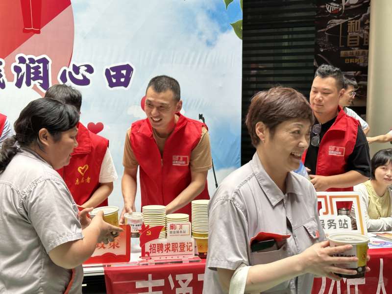 “这么热的天气,你们还坚守在户外一线服务岗位,真是辛苦了!这是我们准备的绿豆汤和夏令降温用品,希望能给你们解解暑。日常工作休息时可以随时到社区‘家门口’就业服务站来歇脚纳凉。”新开街道紫荆社区新时代文明实践站联合开发区就业服务中心、开发区城固之家服务中心、开控集团星湖置业党支部等多家单位在星湖101广场举办“夏日送岗送清凉文明实践润心田”主题公益活动。活动共送出100份清甜可口的绿豆汤和“清凉礼包”,向在烈日炙烤下依然坚守岗位、默默无闻的外卖小哥、保安保洁等户外劳动者致以崇高敬意和诚挚关怀。
