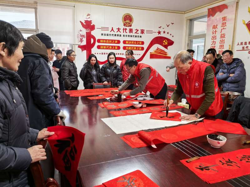 活动开始,志愿者张天梅向大家介绍了新年的传统文化背景和春节的由来。活动围绕收工DIY,送春联和福字展开。 手工DIY活动主要以新年福字拓印为生题,志愿者向大家介绍了拓印的工具及制作方法,激发了大家对手工制作的兴趣和热情。随后,给大家发放材料,参加活动的村民们根据个人喜好挑选,亲自动手制作,现场其乐融融,大家也在工作人员一步一步耐心地指导下完成了作品。大家相互展示自己的作品,享受着成功的喜悦。本次手工DIY活动,锻炼了大家的手、眼、思维能力,同时也给他们带去温馨和祝福。 接着书法爱好者们挥毫泼墨,为村民们书写春联和福字,将一幅幅寓意吉祥、风格各异的春联和福字送到村民手中。这些春联不仅展现了传统文化的魅力,更融入了新时代的新风尚,倡导村民们树立文明新风,摒弃陈规陋习。 活动最后,太家齐放礼花,大家感受到了浓浓的新年氛围。
