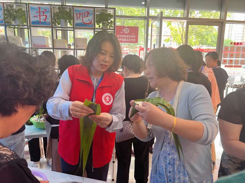 为了更好地传承和弘扬中华优秀传统文化,丰富辖区居民文化生活,让广大居民感受到社区大家庭暖暖的端午情意,活动现场,工作人员们将提前泡好的糯米、粽叶及红枣等所需材料准备好,参与活动群众们志愿者们围在一起,热情高涨,纷纷拿出看家本领,捋粽叶、做漏斗状、填糯米、压紧实、封口、扎捆,巧手翻飞。新手们也谦虚地向前辈学习如何包粽子,互相交流包粽子技巧,大家一边唠着家常,一边包着粽子,转眼间一个个饱满的粽子逐渐成型,活动现场弥漫着粽叶的清香,欢声笑语不断,其乐融融。