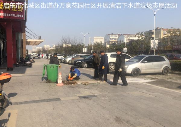 启东市北城区街道办万豪花园社区开展清洁下水道垃圾志愿活动