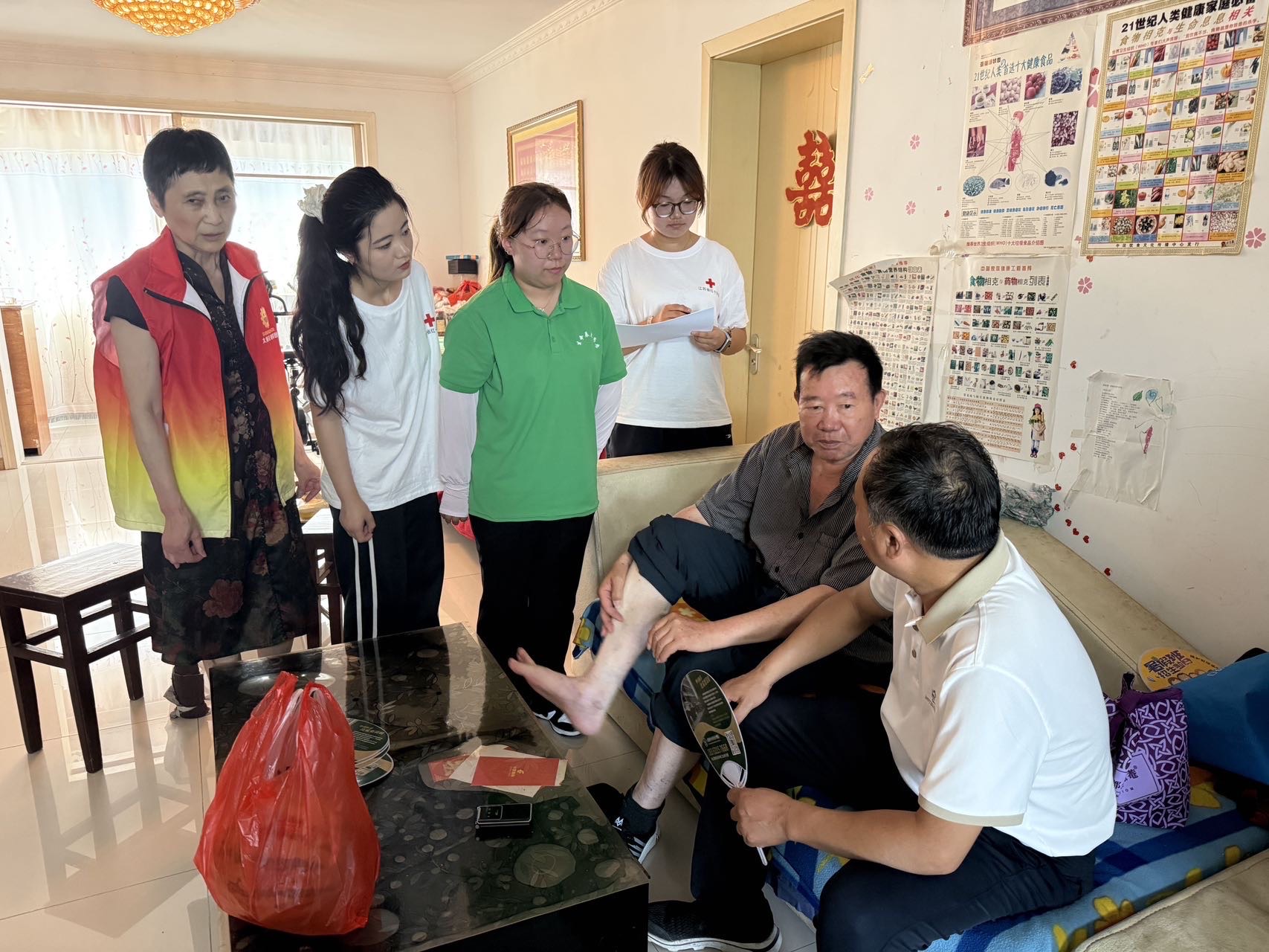 活动以“为小药箱‘减负’为健康‘加码’”主题开启“适老化”药事服务第一课。为确保精准帮扶到位,团队成员主动对接社区,通过前期调研,遴选因病致贫、因病返贫、高龄、空巢等困难老人作为助老对象,通过入户走访和科普宣讲相结合的方式,将药品安全服务送到了居民的家门口,实现了与居民的零距离互动。活动期间,志愿者们在“双师”及社区工作人员的陪同下分组入户,为病困老人建立详细的用药档案,并依据个人情况提供个性化的用药指导,帮助老人正确服用药物,识别药物的相互作用,并且讲解可能会发生的药品不良反应和应对措施。同时,志愿者们对老人家中的药品进行了全面细致的归类整理,逐一核查了药品的有效期,并贴心地标注了近效期和远效期。在温馨的氛围中,过期、变质以及临近有效期的药品被逐一清理,老人们的小药箱瞬间变得整洁有序。
