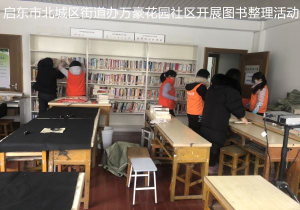 启东市北城区街道办万豪花园社区开展图书整理活动