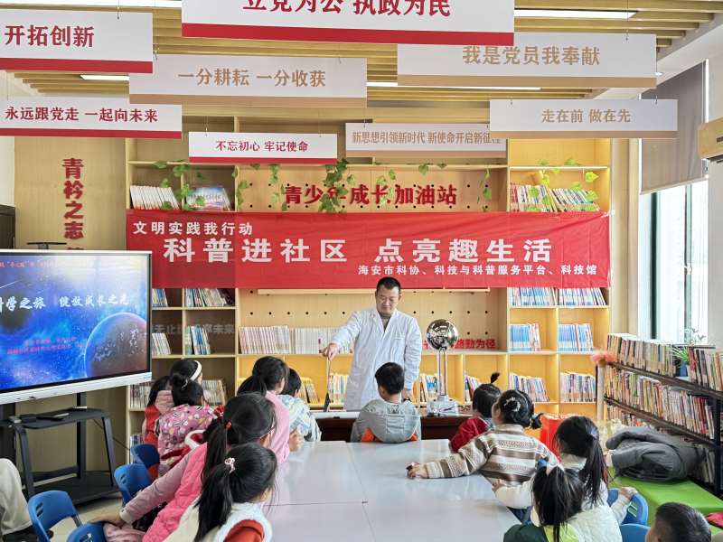 1月17日下午,海安市科协、科技馆走进西园社区,共同开展“科普进社区点亮趣生活”活动。现场,科学秀活动精彩纷呈,吸引了众多社区青少年积极参与。科普老师展示了“逃跑的章鱼”、“静电飞花”等一系列静电实验,每一个实验都充满了趣味性和知识性。孩子们不仅可以近距离观看这些实验,还能在科普老师的引导下亲自上手操作,体验科学实验的乐趣。此次科学秀进社区活动不仅为社区青少年提供了一个学习科学知识的平台,更让孩子在欢声笑语中学习了宝贵的科学知识,体会到了科学原理的独特魅力。