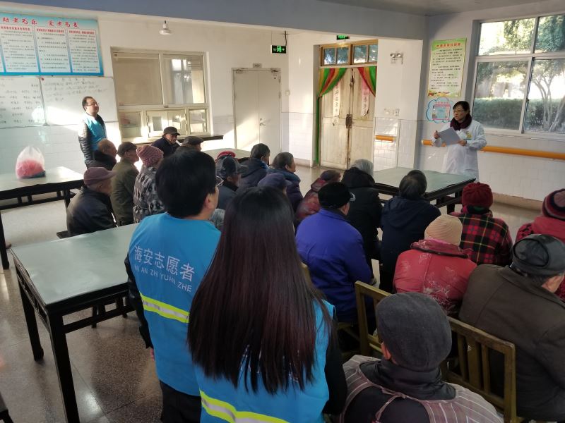 为倡导文明的生活方式,增强老人的自我保健意识,在元旦前夕12月29日下午,海安卫计委与结对共建单位曙光社区的志愿者们走进高新区新陵敬老院,举行了“喜迎元旦佳节,健康呵护夕阳”的文明实践志愿服务活动。