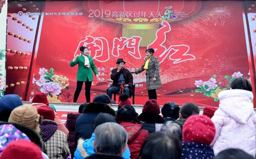 2月5日,大年初一,高新区园庄办事处谭港村南、北两个百姓大舞台上,村40多位新时代文明实践志愿者分别参加了“开门红”和“金猪报喜”过年天天乐文艺演出,由此也拉开了高新区2019年“新春佳节何处去?王良带您看大戏”新春惠民文化活动的帷幕。