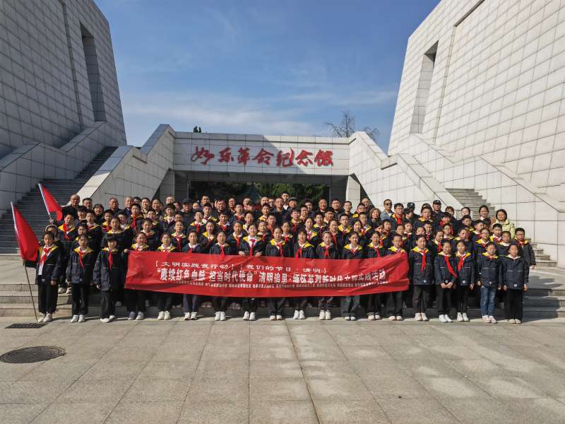 为传承和弘扬中华文化,发挥传统节日思想熏陶和文化教育功能,引导居民、学生铭记革命历史,成为担当民族复兴大任的时代新人,青园社区、古池社区携手如东县友谊路小学、如东城南农贸市场、南通通亚物业、保华物业开展清明追思活动。伴随着激昂的出旗曲,少先队员们肃立致敬,行以队礼。队旗上浸染着先烈的鲜血,承载着先辈的遗志,在纪念碑下迎风飘扬,映衬得“人民英雄永垂不朽”的字样熠熠生辉。“我们是共产主义接班人……”在场的少年们虽身躯娇小,却蕴含着巨大的力量,他们胸前飘扬着鲜艳的红领巾,激昂的队歌在陵园中回荡。各单位代表向烈士敬献花篮,主要负责人为烈士们整理挽联。 全体党员、群众代表、青年团员以及少先队员整齐着装,肃立默哀,表达对革命烈士的深切怀念。在庄严肃穆的氛围中,庄重的国际歌透露着吾辈当自强的决心!每寸土地都浸透着英雄的鲜血,每个故事都承载着历史的篇章。古池社区党总支邀请志愿者张勤兵同志,讲述亲身经历的“对越防御作战”的故事,引领大家回顾那段烽火连天的岁月,感悟到无数革命先烈为祖国而英勇献身的崇高精神。友谊路小学的少先队员代表们以铿锵有力、饱含情感的朗诵《清明祭先烈》,展现了新时代少年心中的英雄形象和对党旗的忠诚。