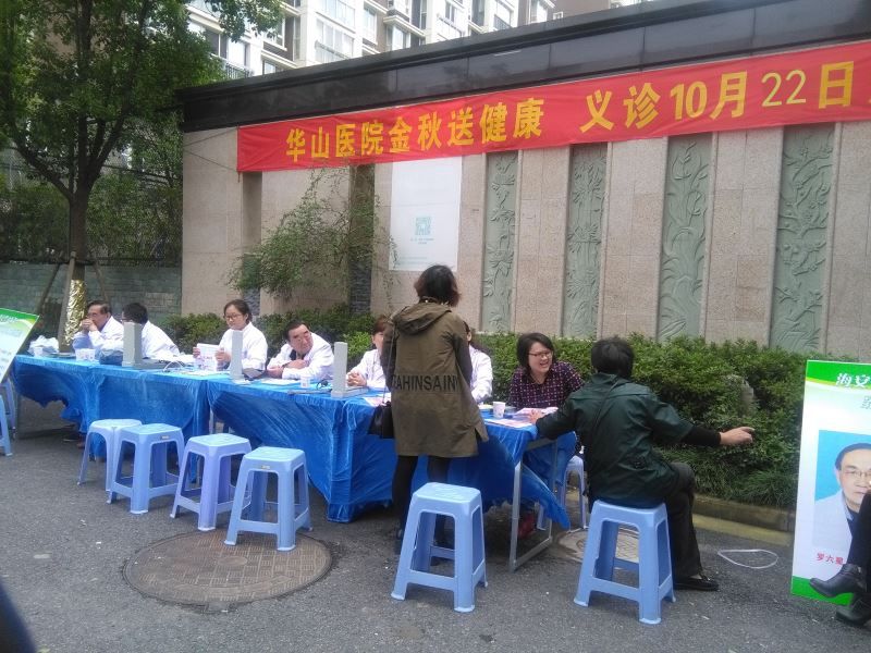 得知华山医院的专家前来义诊,大批居民早早来到社区门前排队等候。义诊期间,各位专家耐心询问病情、体格检查、交代进一步诊疗的方案和日常生活的注意事项等。而社区人员也在一边帮忙,做一些力所能及的事情。现场还来了一些580志愿者,搀扶着腿脚不方便的朋友们,指引陪同他们做各项检查。时值金秋,义诊活动吸引了不少居民的关注,前来咨询就诊者络绎不绝,居民们都因能在家门享受到免费的高标准诊疗服务而感到高兴,对医务工作者的爱心行为赞赏有加。社区中老年人更是主要参与者,他们大部分都没有到医院做过系统的体检,对健康方面的知识欠缺了解,专家们认真地聆听,耐心地解答群众的问题。就诊患者高兴地表示,华山医院亲自上门为他们做免费检查、宣传健康知识,服务贴心周到。
