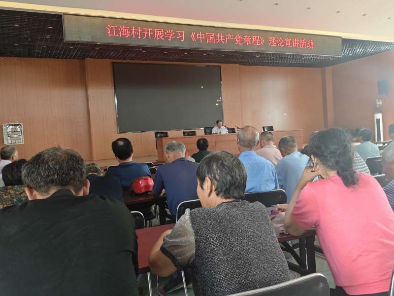 为进一步提高辖区党员的政治素质,加强对党员的教育、管理。7月25日上午,江海村新时代文明实践站组织开展《中国共产党章程》宣讲活动。活动中,村居志愿者带领大家重温入党誓词并向大家宣讲,重点强调党的理论是指引全党奋斗的行动指南,辖区党员要对照党章党规和加强党的建设有关要求,立足当前,带头学,用心干,把学习知识当成一种生活态度、一种工作责任、一种精神追求,不断提升学习实效,学以致用。时刻谨记党员身份,发挥模范作用,紧密联系村居实际情况,推进各项工作迈向新台阶。参加宣讲活动的党员们表示:“今后不管在生活还是工作中,都要把思想行动统一到党章的各项规定和要求上来。”下一步,江海村将从党章中汲取强大的精神力量,增强党性修养,继续秉持对党的事业信仰和坚守,开展好各项民生工作。