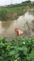 因大雨引起泯沟水漫出,导致庄稼被淹,丰利村退役军人了解后志愿下水对管道口进行清理。