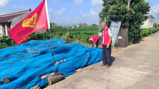 东海镇退役军人志愿者以及建民村的红色志愿队组织退役军人,帮助建民村的村民清除路边的垃圾,由于村民家整改房屋,把旧房上的建筑物换下来后就堆放在路边,导致路上行人不便,于是退伍军人志愿者们为了村民过路的安全问题及环境问题,他们把所有换下的旧的建筑物及门窗框整理好,放在靠近路边的空地上,并用网纱覆盖,这样既解决了安全问题又解决了环境问题,村民看着他们被汗水浸湿的衣服,纷纷表示感谢。
