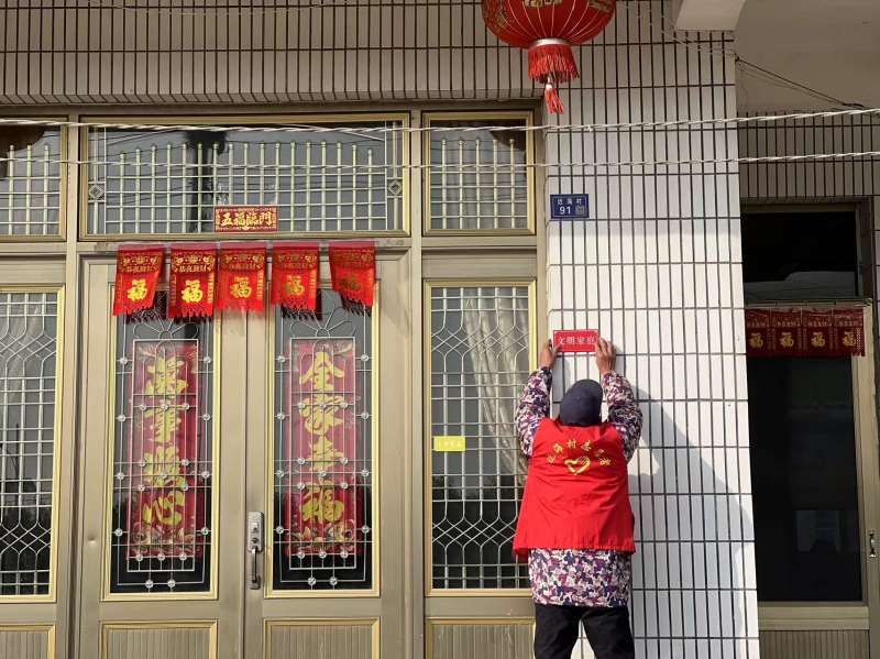对村内部分家庭张贴文明家庭标识