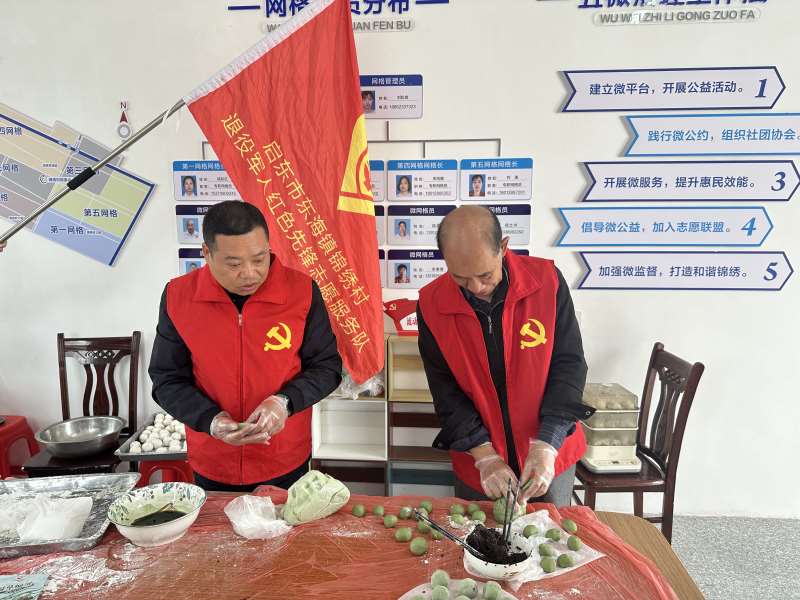 锦绣村退役军人红色志愿先锋队志愿者为村里活动做汤圆