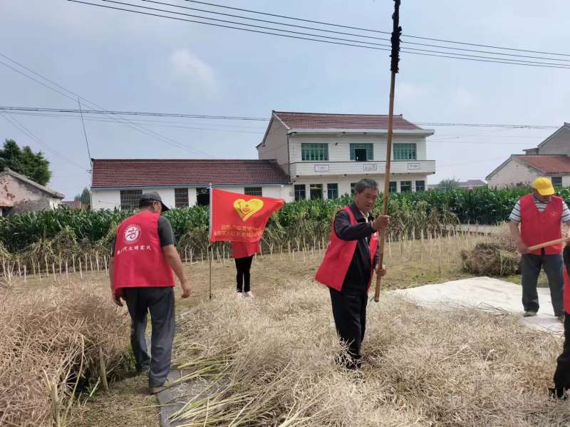 兴益村退役军人服务站组织志愿者为困难老人进行夏收