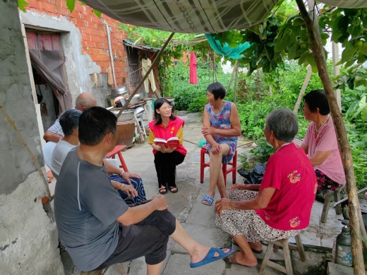 志愿者们迎合群众“胃口”,用“大白话”讲清“大道理”,把“书面语”讲成“知心话”,将“天下事”讲成“身边事”,用温暖“乡音”传递党的“好声音”,让党的创新理论“飞入寻常百姓家”。