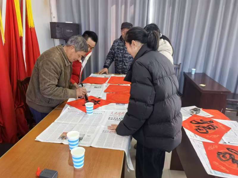 滥港桥村新时代文明实践站开展“翰墨飘香迎新春,书写福字送祝福”宣讲活动