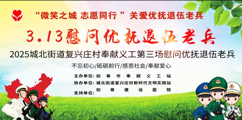城北街道复兴庄村慰问优抚退伍老兵 集合时间:3月13日下午1点20分 集合地点:义工站办公室 活动联系人:季晓光13951414182陈淦81768110