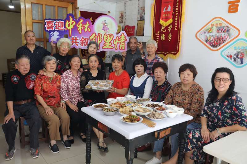 朝晖社区在共融、共通邻里会客厅,举行中秋团圆邻里宴活动。