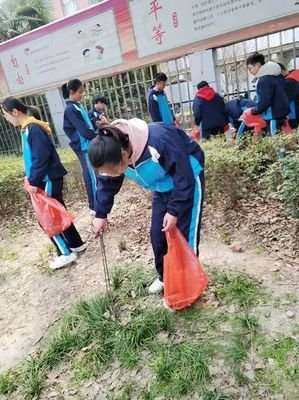 启东中学周边绿化带捡拾烟头活动。