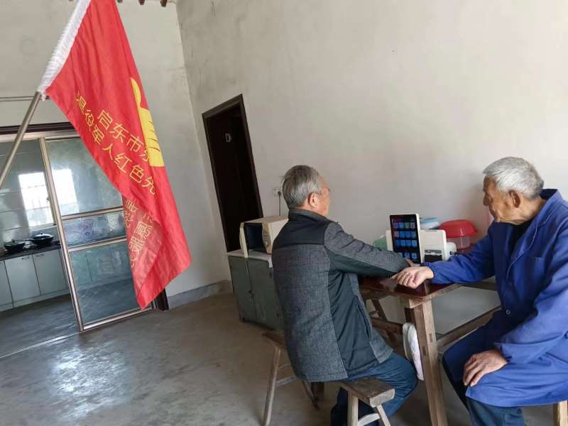 锦绣村退役军人“红色先锋”志愿者医队工作者为优抚对象健康检查